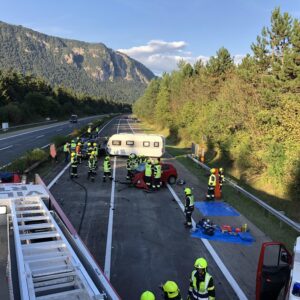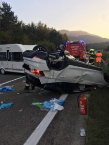 In einem Fahrzeug war ein Mann schwerst eingeklemmt, im zweiten PKW wurden die Lenkerin sowie deren Beifahrerin von nachkommenden Verkehrsteilnehmer aus dem überschlagenen Fahrzeug gezogen. Die Urlauberfamilie mit dem Wohnwagengespann konnte sich aus eigener Kraft befreien.