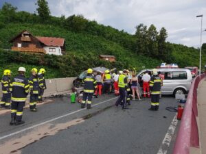 Erst nachdem mit mehrerern Hydraulischen Rettungsgeräten das Dach und die Türen entfernt wurden, konnte der schwerst Verletzte aus dem Fahrzeug geborgen und dem Notarztteam übergeben werden,berichtet Einsatzleiter HBI Harald Geissler Kommandant der Hauptfeuerwache Villach.
