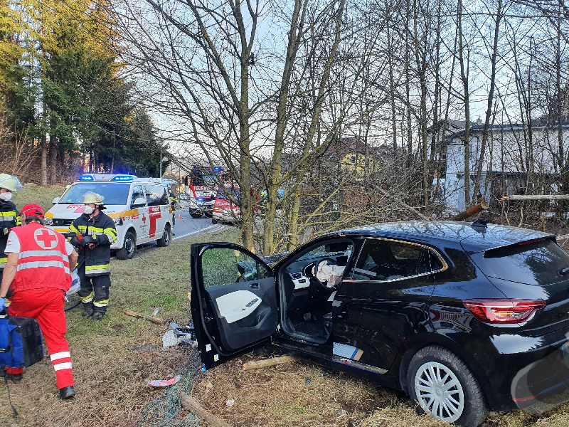 Eine Person befand sich im Fahrzeug, war jedoch nicht eingeklemmt. Der anwesende Notarzt des Roten Kreuzes versorgte bereits die Dame.