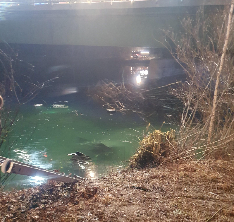 Nach dem Ausweiten des Suchbereiches durch die Taucher, konnte eine Person rund 30 Meter vom Unfallwrack entfernt unter Wasser lokalisiert und geborgen werden. Leider konnte der anwesende Notarzt nur mehr den Tod des jungen Mannes feststellen.