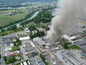 Am Sonntag den 11. Juni 2023 um kurz vor 10:00 Uhr brach ein Brand in der Lagerhalle eines Industriebetriebes in Villach- Seebach aus. Der erste Notruf in der Feuerwehrleitstelle Villach, ein Nachbar des Industriegeländes, meldete bereits den Vollbrand der Lagerhalle in der Emil- von- Behring- Straße. Zu diesem Zeitpunkt war die Rauchsäule bereits weit über Villach sichtbar. Mit der Alarmstufe B5- Brand Lagerhalle, wurden die ersten Feuerwehren alarmiert und die örtlich zuständige Hauptfeuerwache Villach, FF Vassach, FF St. Magdalen und FF Perau in Marsch gesetzt.