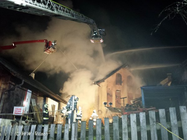 Um Punkt Mitternacht meldete die Polizei der Bezirksalarm- und Warnzentrale Villach den Vollbrand eines Wirtschaftsgebäudes im Stadtteil St.Georgen. Mehrere darauffolgende Notrufe bestätigten dieses Meldebild.
