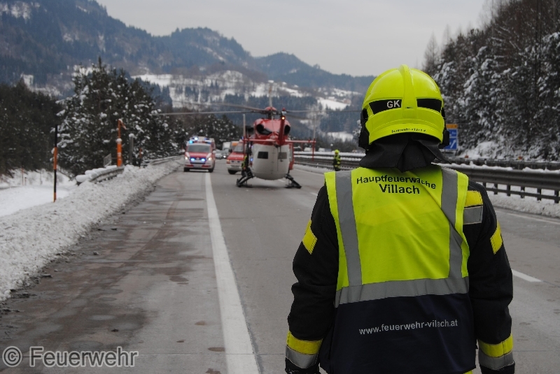 Um 11 Uhr vormittags meldete ein Autofahrer der Alarm- und Warnzentrale Villach Stadt einen Verkehrsunfall mit eingeklemmter Person auf der A10 Tauernautobahn im Bereich der Auf- bzw. Abfahrt Villach West.