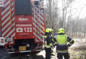Rund 20 Meter von der Zufahrtsstraße entfernt konnten die Flammen im Wiesen- und Waldbereich lokalisiert werden.