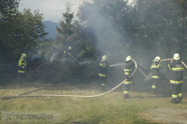 Bei knapp 32 Grad Außentemperatur wurde der Einsatz zur schweißtreibenden Arbeit für die eingesetzten Feuerwehrleute.