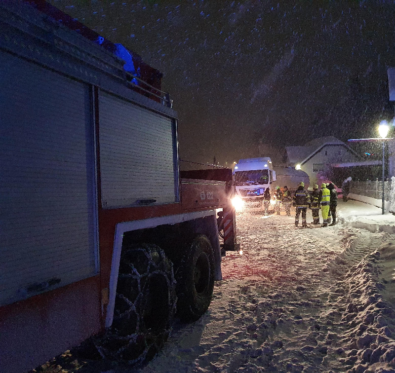 Bereits am ersten Tag mussten im Stadtgebiet drei Sattelkraftfahrzeuge, die auf Grund der Schneefahrbahn stecken geblieben waren, mit unserem schweren Rüstkranfahrzeug aus ihrer misslichen Lage befreit werden.