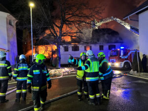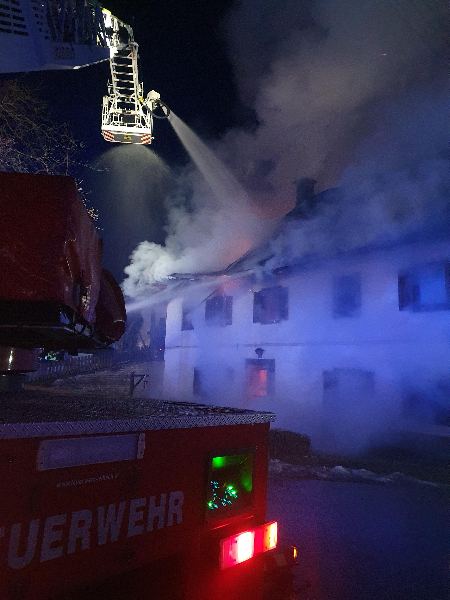 Nach rund einer Stunde zeigte der massive, direkte Löschangriff Wirkung. Trotz des raschen Einsatzes der Feuerwehren konnte das Wirtschaftsgebäude und teilwiese das Wohnhaus nicht gerettet werden. Ein Übergreifen der Flammen auf die angrenzenden Wohnhäuser konnte verhindert werden.