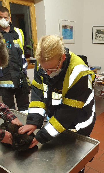 Nach kurzer Zeit konnten die Flammen gelöscht werden und die vermisste Katze aus der verrauchten Wohnung gerettet werden. Mittels Sauerstoff wurde das Tier erstversorgt und anschließend durch ein Team der Hauptfeuerwache zum diensthabenden Tierarzt nach Feistritz- Drau zur weiteren Versorgung gebracht.