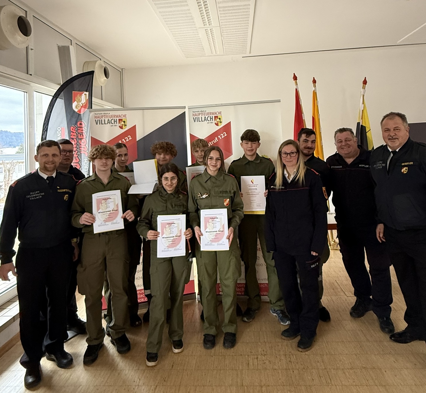 Am Samstag, dem 31. Jänner 2026, stellte die Feuerwehrjugend der Hauptfeuerwache Villach ihr Können eindrucksvoll unter Beweis: Sieben engagierte Mitglieder traten im Bezirk Villach Stadt zum Wissenstest in den Stufen Silber und Gold sowie zum Feuerwehrjugend-Leistungsabzeichen (FJLA) an – und das mit großem Erfolg.