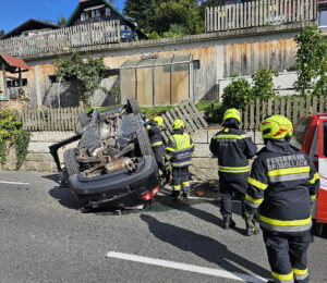 Fahrzeugüberschlag mit eingeklemmter Person in Villach