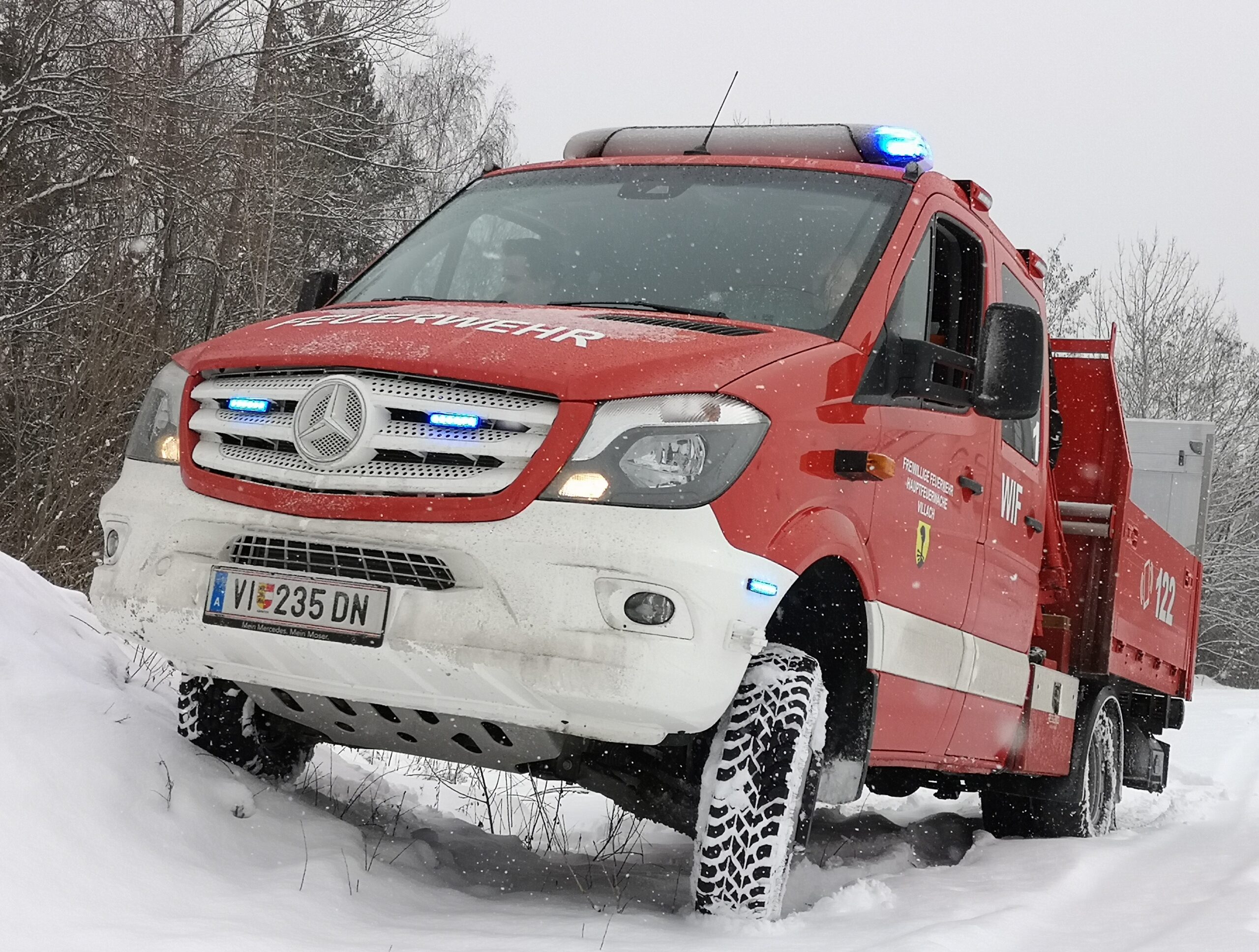 Aufgebaut wurde das Fahrzeug auf einem Mercedes Sprinter 412D durch den Villacher Fahrzeugbauer Ressenig.